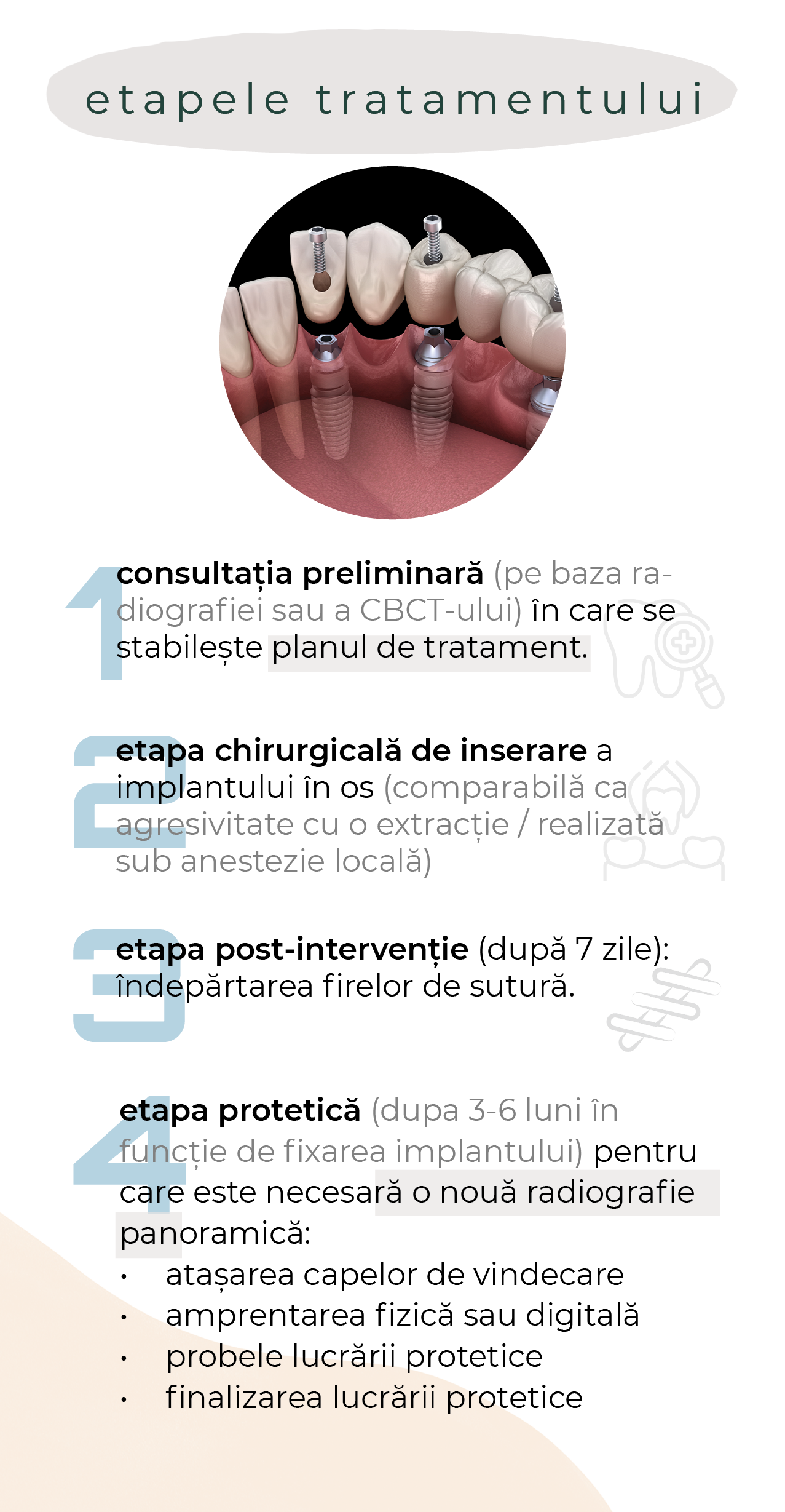 • efectua o igienizare profesională (detartraj cu ultrasunete, airflow, periaj profesional)