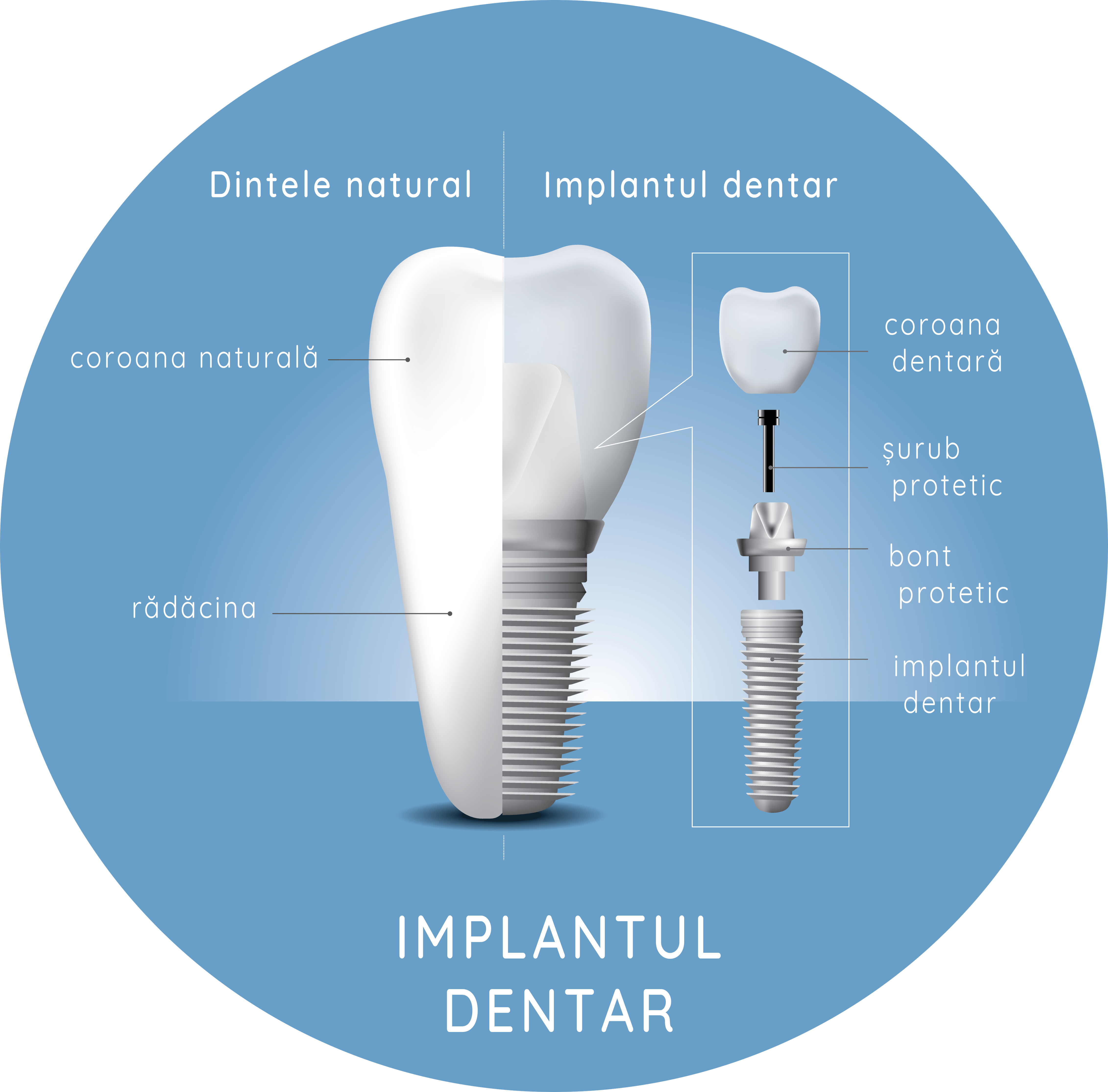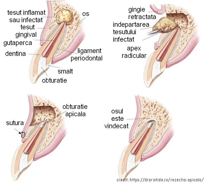 (de jos în sus, incluzând și gingia)